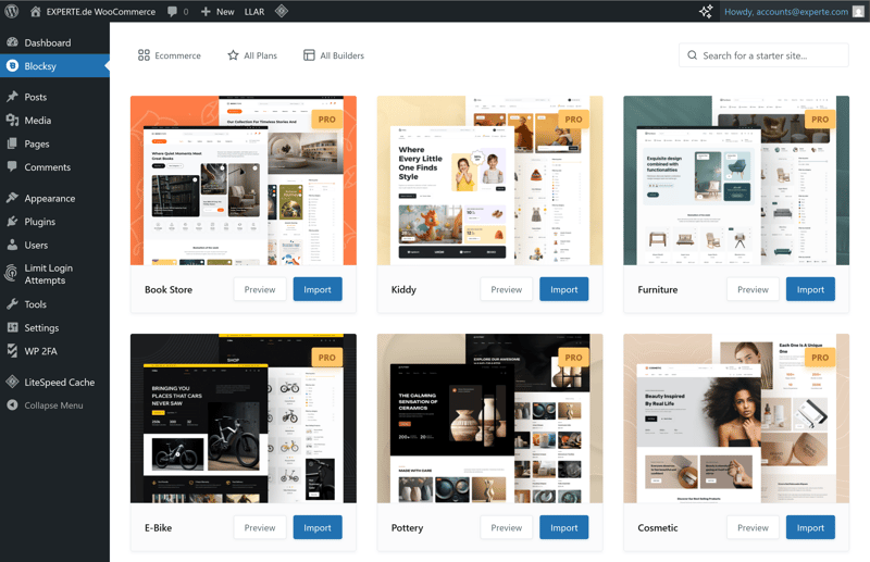 Some starter templates rely on additional plugins. This increases the installation effort and adds to your site's technical complexity.Limited WooCommerce features