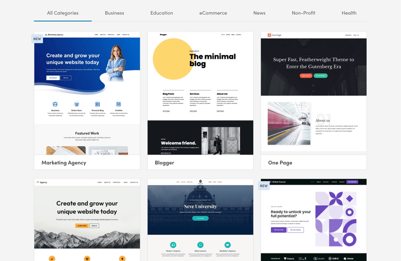 The selection of themes is extensive, which is one of WordPress’s biggest strengths. From our perspective, these seven themes are all strong options: