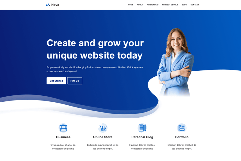 The Neve WordPress theme in its default version.